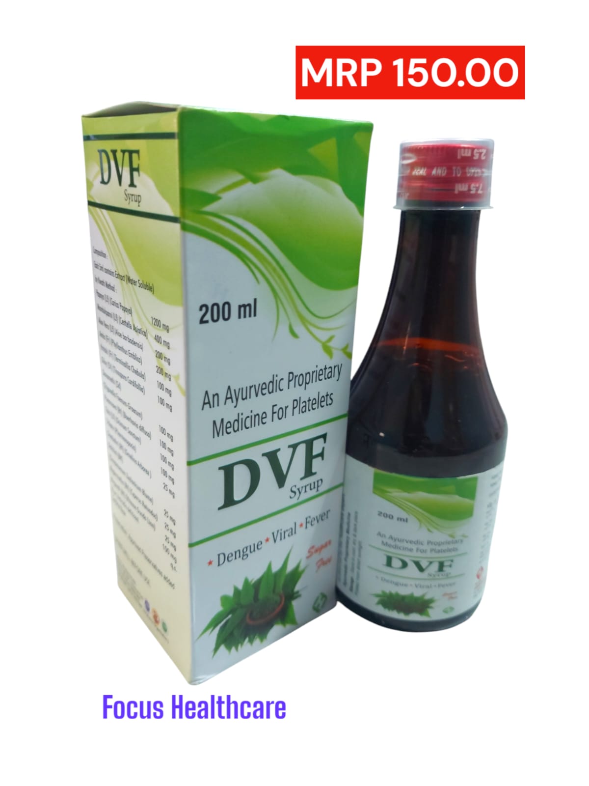 DVF Syp is Enriched with Giloy & Tulsi – Fortified with the immune-boosting power of Giloy and Tulsi for faster recovery and enhanced results. Supports Immunity & Recovery – Effective during dengue fever, chikungunya, viral infections, and post-illness fatigue. Ayurvedic Formula for Blood Health – Enhances blood purification, liver support, and improves digestion with no side effects. Safe for All Ages – Suitable for children, adults, and elderly under proper dosage; free from added sugar, alcohol, and harmful preservatives. Triple-Action Ayurvedic Formula – Combines Papaya, Giloy, and Tulsi to purify blood, support liver health, and strengthen immunity.